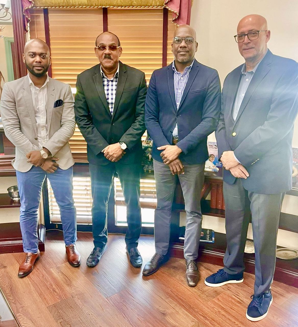 On 25 October 2023, Prime Minister of Antigua and Barbuda, Honorable Gaston Browne, held an audience with CWI President Dr. Kishore Shallow at the Office of the Prime Minister in St John’s. Also in attendance were Honorable Daryll Matthew, Minister of Sports, Ricky Skerritt, Chairman of the Coolidge Cricket Ground (CCG) Board and former CWI President, and Nelecia Yeates, CCG General Manager.